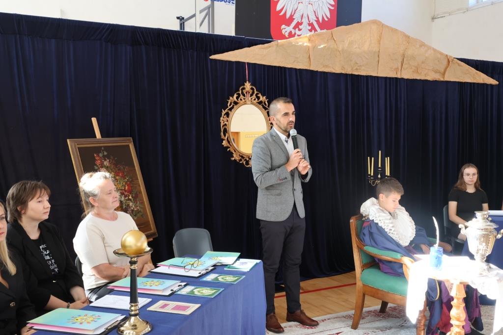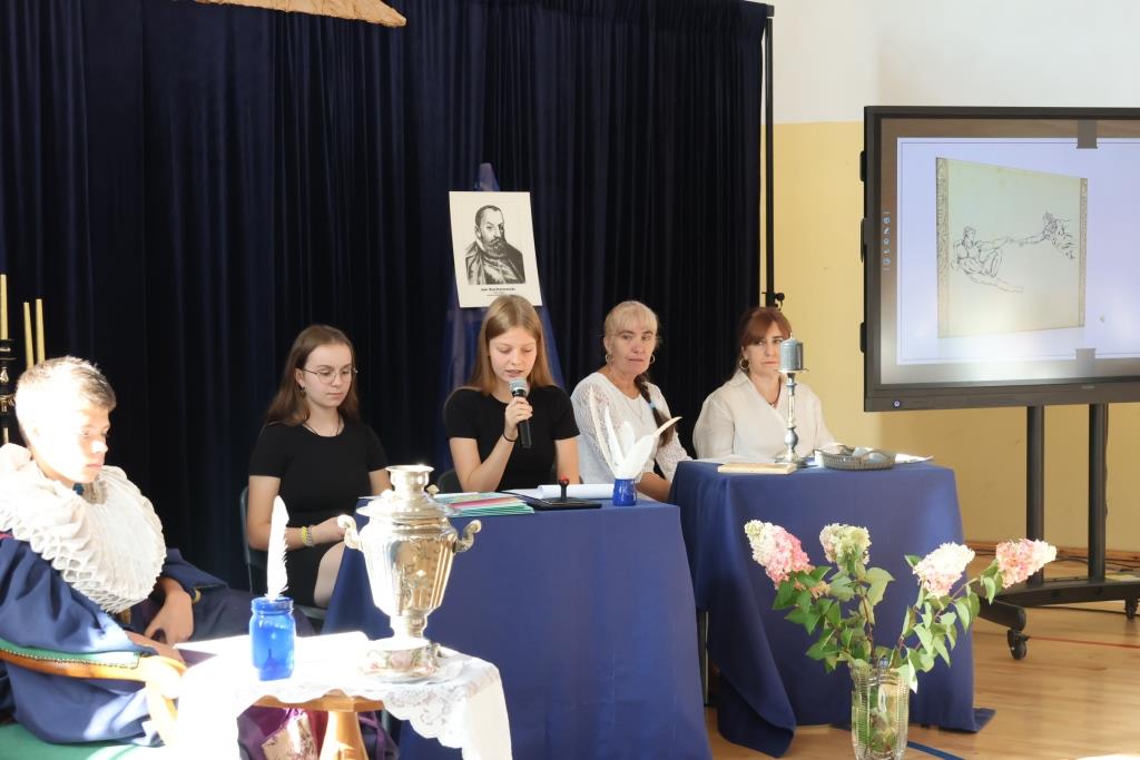 Do czytania fraszek i trenów zaproszeni zostali: Marzena Kmieć – zastępca wójta gminy Blizanów, Joanna Włodarczyk – kierownik Referatu Oświaty UG w Blizanowie, Paulina Wróblewska – dyrektor Gminnej Biblioteki Publicznej w Blizanowie, Anna Bartczak – bibliotekarka Filii w Rychnowie, Natalia Kurek – Przewodnicząca Rady Rodziców, Krzysztof Konewka – dyrektor rychnowskiej szkoły. W rolę mistrza z Czarnolasu wcielił się uczeń Tobiasz Fułek. Imprezę prowadziły uczennice: Aleksandra Kozłowska i Katarzyna Mielcarek. Za przygotowanie uroczystości odpowiadały: Jolanta Gilicka – bibliotekarka szkolna oraz polonistki Zofia Szkiełka i Katarzyna Marciniak. Nastroju dodały przygotowana do odtworzenia muzyka i sceneria sali.