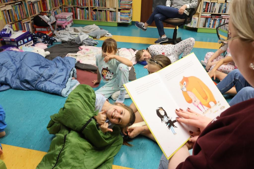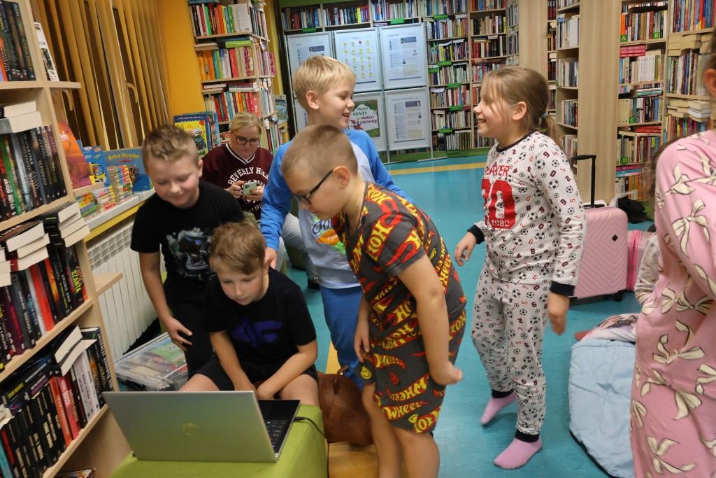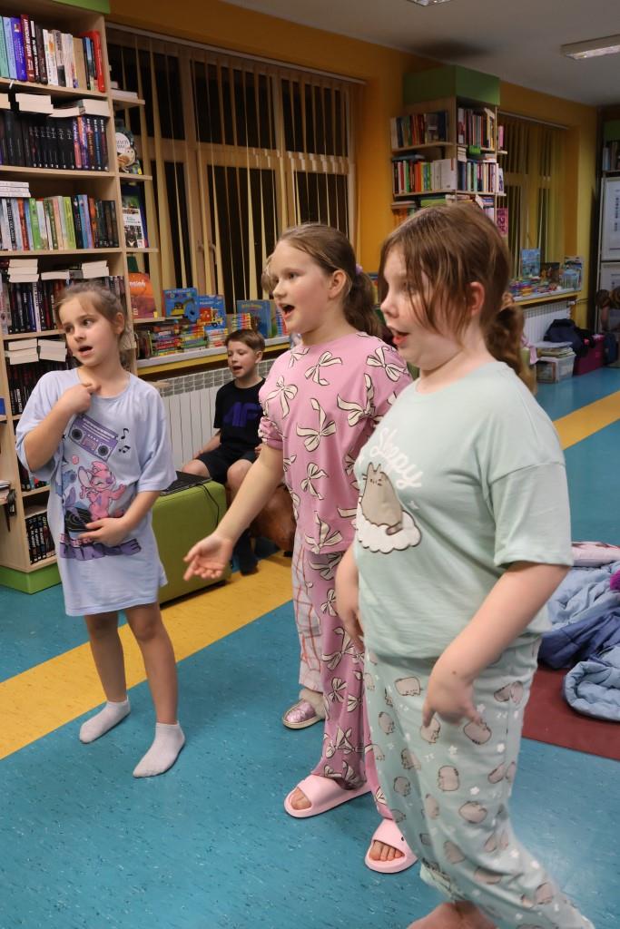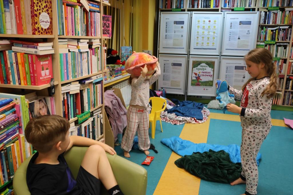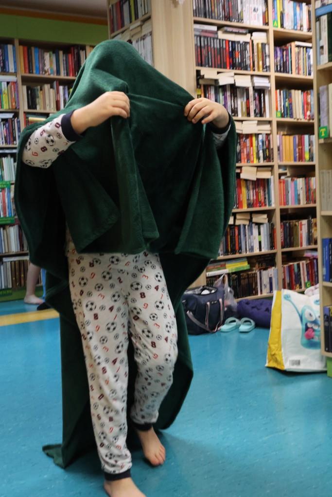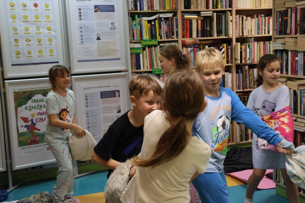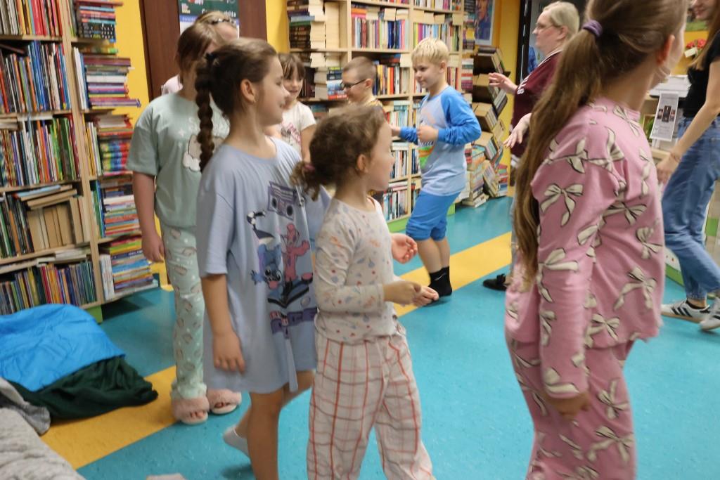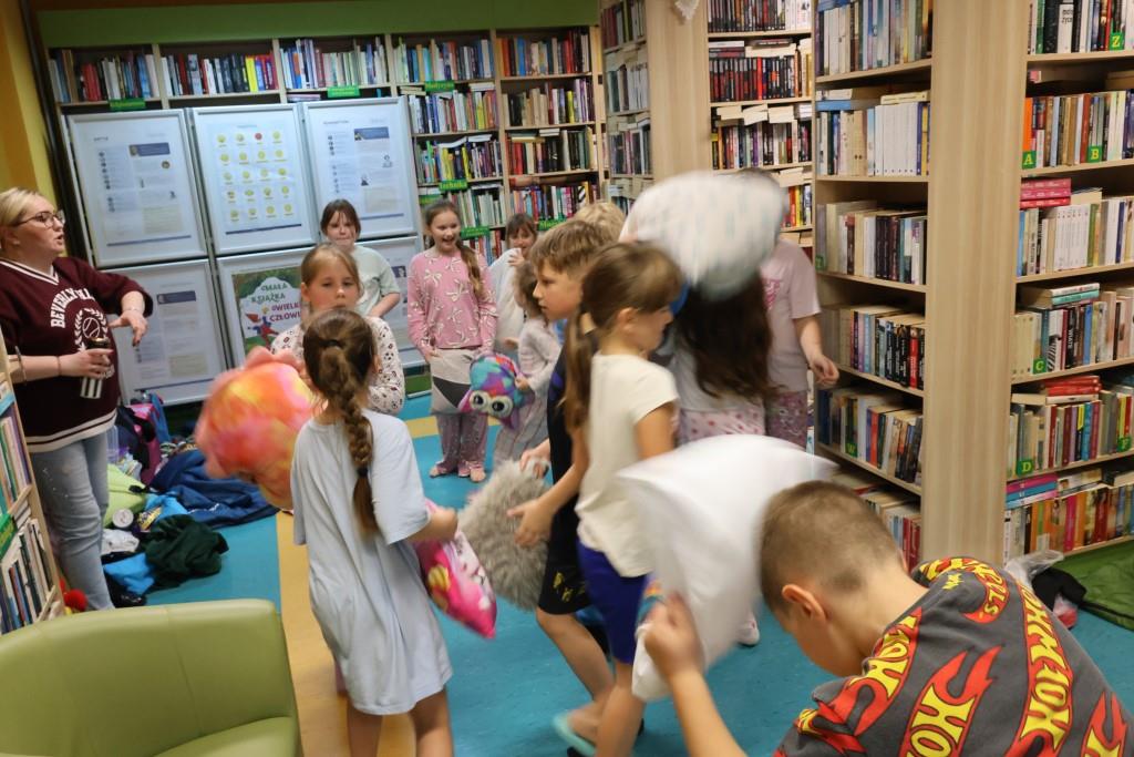 Była to również XI noc w blizanowskiej bibliotece, która od 2015r. organizowała dla umówionych grup uczniowskich po dwie noce w roku (w ferie i w czasie wyznaczonym przez Centrum Edukacji Obywatelskiej. Aktywną działalność na tym polu przerwała pandemia. Tym razem z 12-osobową grupą uczniów kl. IIIa Zespołu Szkolno-Przedszkolnego w Blizanowie nocowała ich wychowawczyni Ewelina Orpel, Gabi Oehl - uczennica kl. I SP nr 2 im. Jana Pawła II w Kaliszu oraz bibliotekarki GBP Blizanów: Paulina Wróblewska - dyrektor, Krystyna Gronowska i praktykantka Wiktoria Łyskawka. Spotkanie rozpoczęło się o godz. 18:30 i trwało do godz. 8:30 kolejnego dnia. Tym razem warsztaty klocków Lego przeprowadzone przez Klockowe studio konstrukcji były połączone z lekturą Harry’ego Pottera i nauką języka angielskiego. Odbyły się pod hasłem „Magic School – LEGO Wizards and Witches”. Na początku uczestnicy założyli Tiarę Przydziału, która wskazała im dom w magicznym uniwersum Harry’ego Pottera: Gryffindor, Hufflepuff, Ravenclaw lub Slytherin. Pracując w czterech grupach budowali: zamki, eliksiry, magiczne stworzenia i tajemnicze ogrody. Przy okazji poznawali angielskie słówka związane z magią. Nauka słownictwa połączona była z zabawą - grą memory. Na zakończenie każdy uczestnik otrzymał od prowadzących zajęcia dyplom oraz słodycze. O kulinaria tego wieczoru zadbały też mamy uczniów i praktykantka Wiktoria, przygotowując babeczki i deserki. Tradycją tej imprezy poza warsztatami kreatywnymi jest również wspólny posiłek (pizza-gigant), śpiewy, tańce i ... głośne czytanie. Dobór literatury był nieprzypadkowy „Lucek i Dziki Nieśpiki” Agnieszki Misiak. Tytułowe zwierzęta są metaforą stanu emocjonalnego dziecka. „Im bardziej trzeba iść spać, tym Lucka nachodzi większa ochota na zabawę, jedzenie czy wygłupy – nieokiełznane Dziki Nieśpiki szaleją w najlepsze”. Zupełnie jak w przypadku uczestników blizanowskiej nocy, którzy robili wszystko, by nie spać. Chociaż młodzi czytelnicy przynieśli śpiwory i ubrali się w piżamy, spania było naprawdę niewiele. W tym roku organizator akcji zaproponował bibliotekom projekcję filmu „Biuro Detektywistyczne Lassego i Mai. Rabuś z pociągu” - ekranizację kultowej serii książek dla dzieci autorstwa szwedzkiego pisarza Martina Widmarka. Podczas nocy w bibliotece można się było przekonać, że w jednym z pojazdów w bibliotece ukryty jest właśnie ten cykl książek.