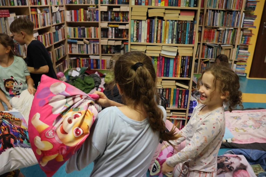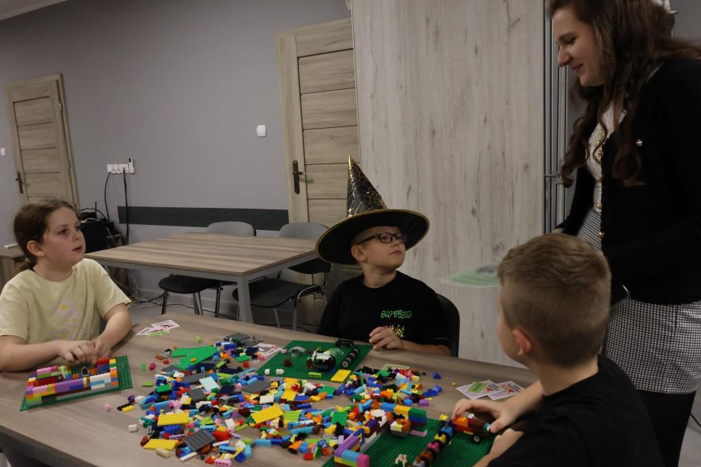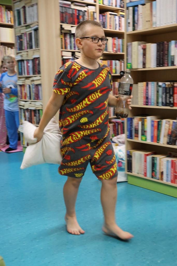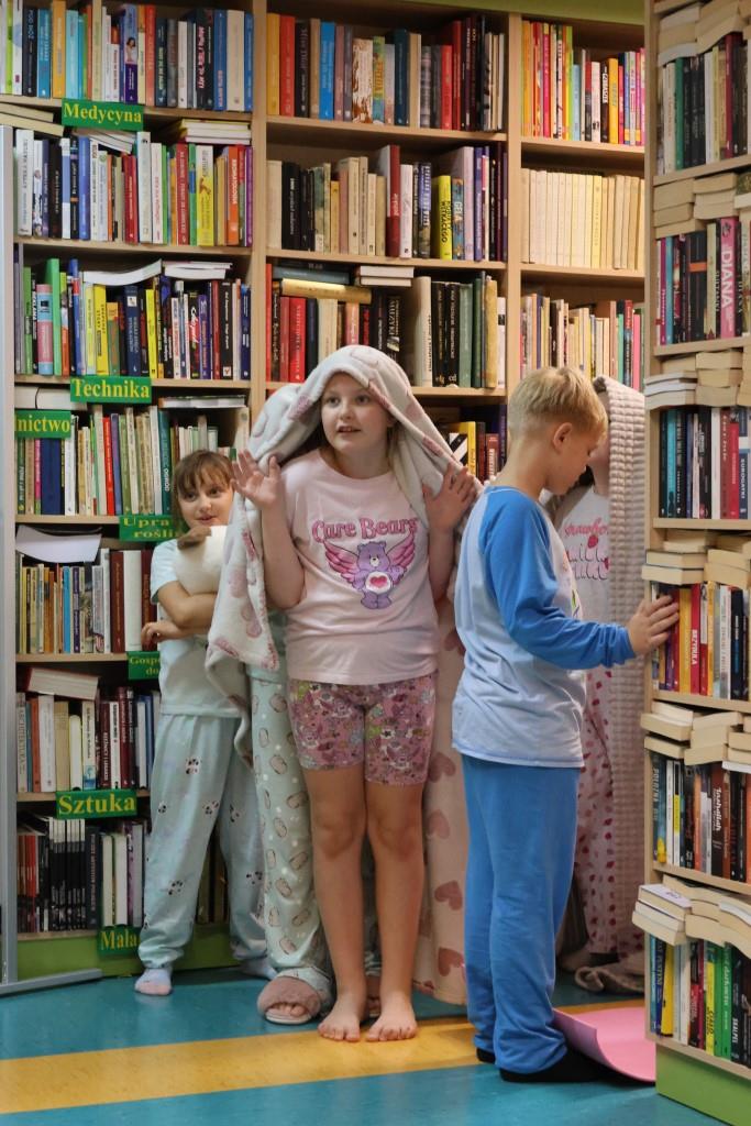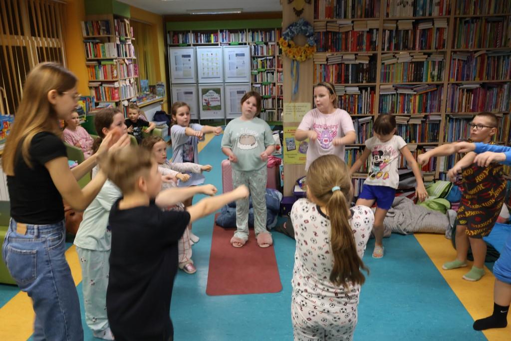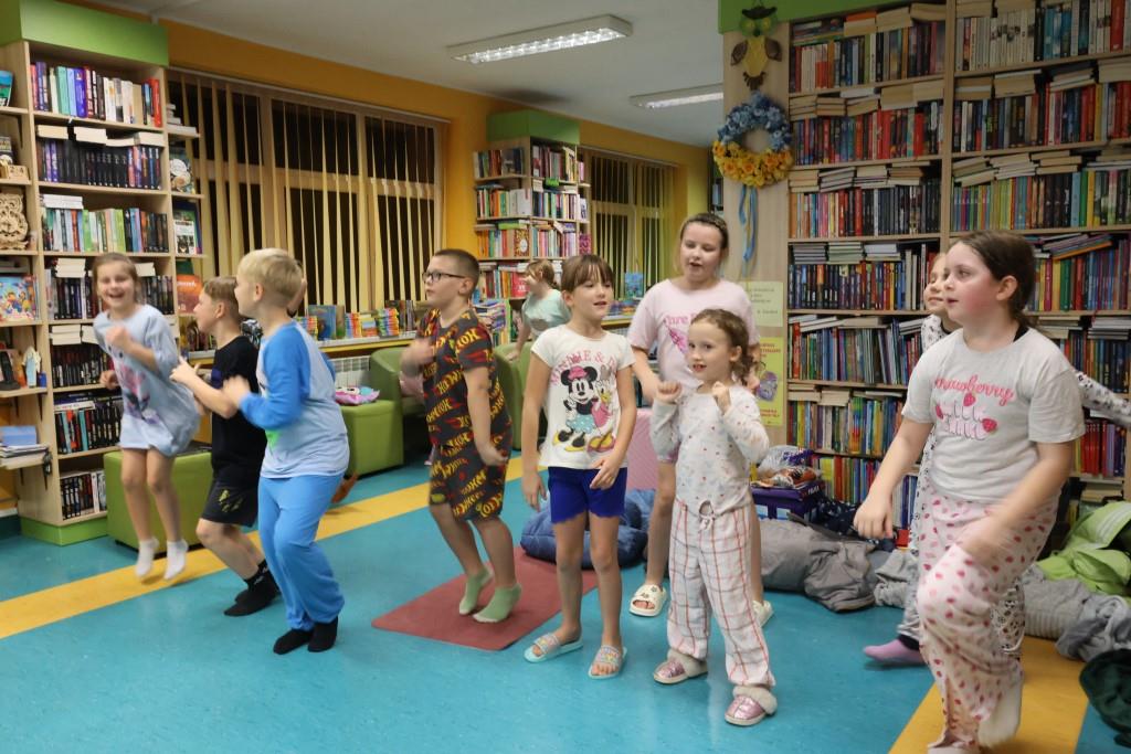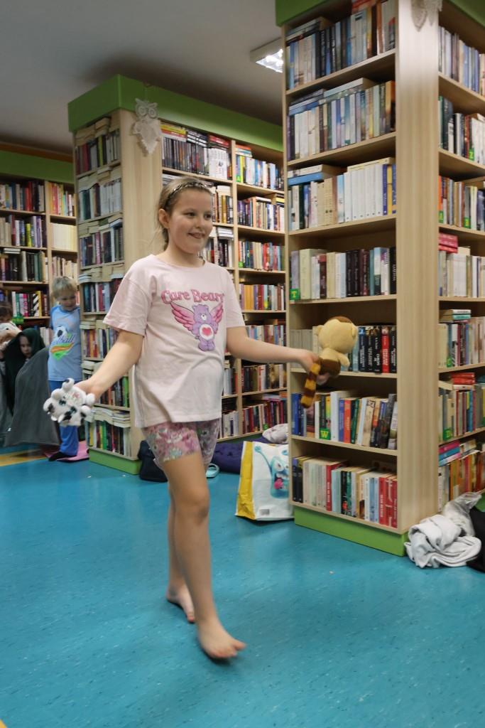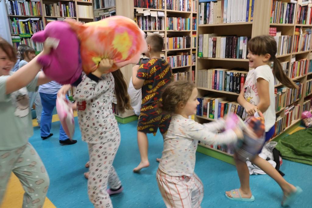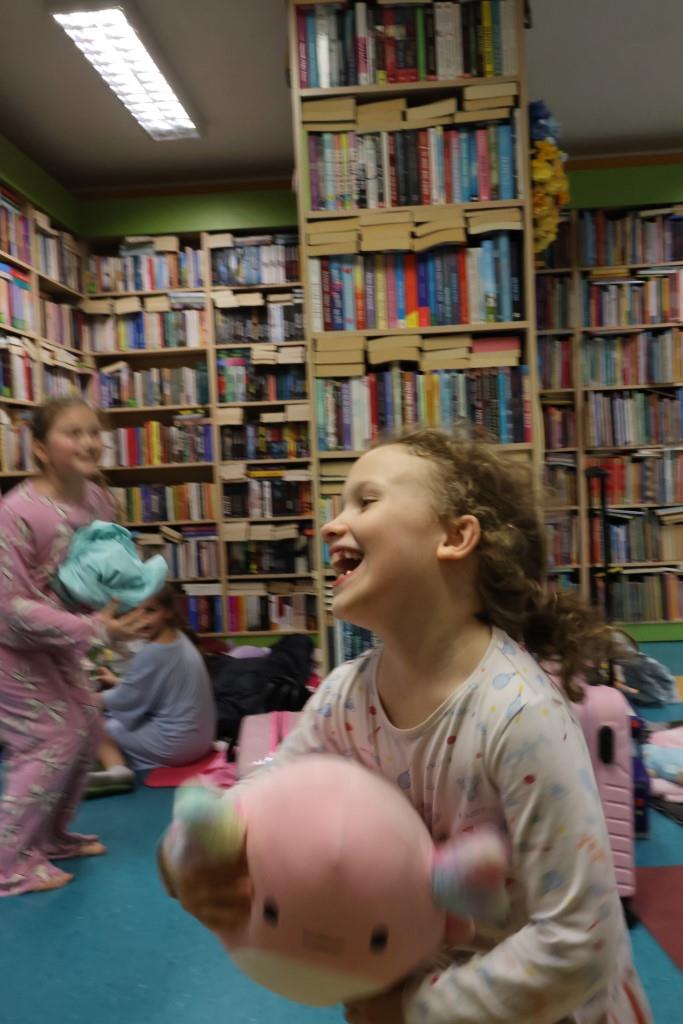 Była to również XI noc w blizanowskiej bibliotece, która od 2015r. organizowała dla umówionych grup uczniowskich po dwie noce w roku (w ferie i w czasie wyznaczonym przez Centrum Edukacji Obywatelskiej. Aktywną działalność na tym polu przerwała pandemia. Tym razem z 12-osobową grupą uczniów kl. IIIa Zespołu Szkolno-Przedszkolnego w Blizanowie nocowała ich wychowawczyni Ewelina Orpel, Gabi Oehl - uczennica kl. I SP nr 2 im. Jana Pawła II w Kaliszu oraz bibliotekarki GBP Blizanów: Paulina Wróblewska - dyrektor, Krystyna Gronowska i praktykantka Wiktoria Łyskawka. Spotkanie rozpoczęło się o godz. 18:30 i trwało do godz. 8:30 kolejnego dnia. Tym razem warsztaty klocków Lego przeprowadzone przez Klockowe studio konstrukcji były połączone z lekturą Harry’ego Pottera i nauką języka angielskiego. Odbyły się pod hasłem „Magic School – LEGO Wizards and Witches”. Na początku uczestnicy założyli Tiarę Przydziału, która wskazała im dom w magicznym uniwersum Harry’ego Pottera: Gryffindor, Hufflepuff, Ravenclaw lub Slytherin. Pracując w czterech grupach budowali: zamki, eliksiry, magiczne stworzenia i tajemnicze ogrody. Przy okazji poznawali angielskie słówka związane z magią. Nauka słownictwa połączona była z zabawą - grą memory. Na zakończenie każdy uczestnik otrzymał od prowadzących zajęcia dyplom oraz słodycze. O kulinaria tego wieczoru zadbały też mamy uczniów i praktykantka Wiktoria, przygotowując babeczki i deserki. Tradycją tej imprezy poza warsztatami kreatywnymi jest również wspólny posiłek (pizza-gigant), śpiewy, tańce i ... głośne czytanie. Dobór literatury był nieprzypadkowy „Lucek i Dziki Nieśpiki” Agnieszki Misiak. Tytułowe zwierzęta są metaforą stanu emocjonalnego dziecka. „Im bardziej trzeba iść spać, tym Lucka nachodzi większa ochota na zabawę, jedzenie czy wygłupy – nieokiełznane Dziki Nieśpiki szaleją w najlepsze”. Zupełnie jak w przypadku uczestników blizanowskiej nocy, którzy robili wszystko, by nie spać. Chociaż młodzi czytelnicy przynieśli śpiwory i ubrali się w piżamy, spania było naprawdę niewiele. W tym roku organizator akcji zaproponował bibliotekom projekcję filmu „Biuro Detektywistyczne Lassego i Mai. Rabuś z pociągu” - ekranizację kultowej serii książek dla dzieci autorstwa szwedzkiego pisarza Martina Widmarka. Podczas nocy w bibliotece można się było przekonać, że w jednym z pojazdów w bibliotece ukryty jest właśnie ten cykl książek.