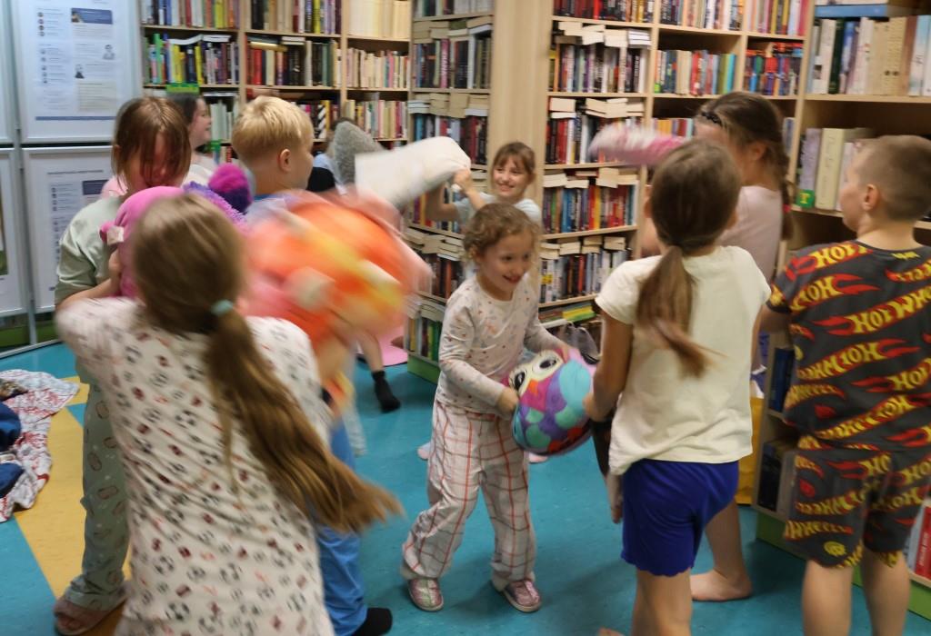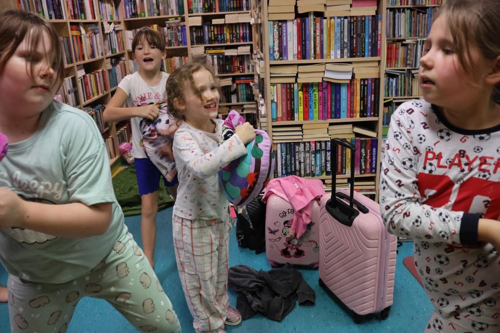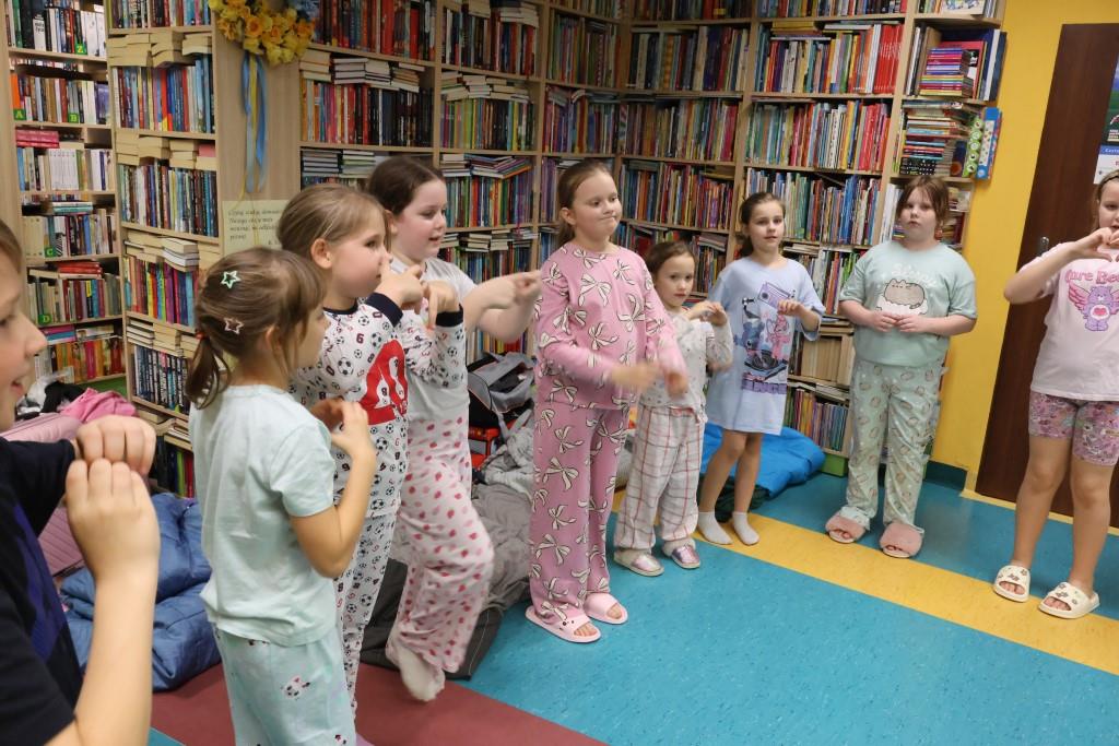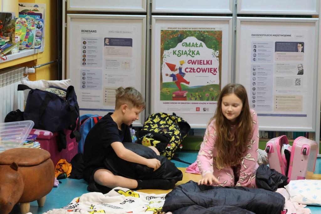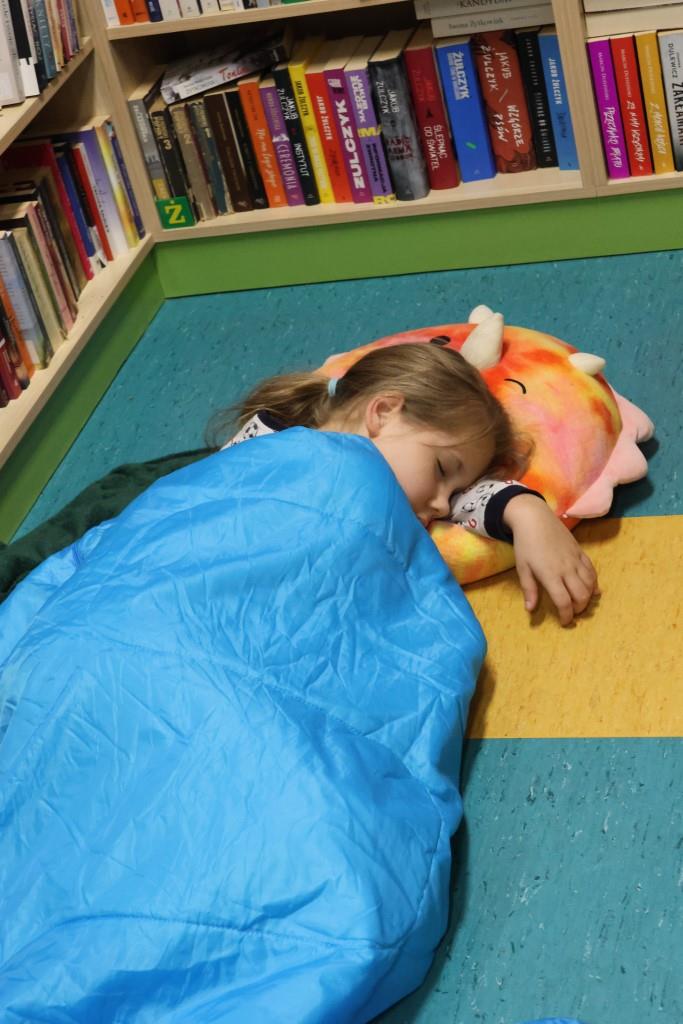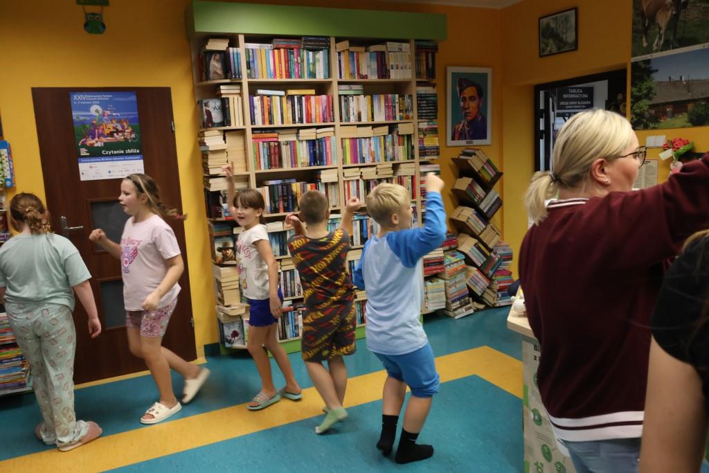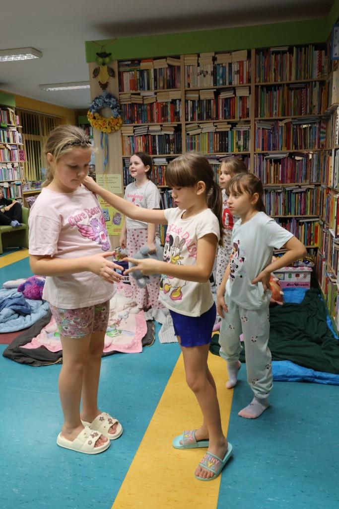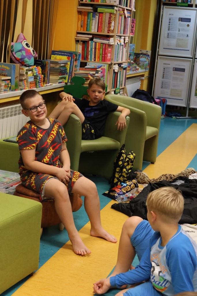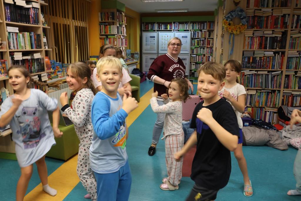 Była to również XI noc w blizanowskiej bibliotece, która od 2015r. organizowała dla umówionych grup uczniowskich po dwie noce w roku (w ferie i w czasie wyznaczonym przez Centrum Edukacji Obywatelskiej. Aktywną działalność na tym polu przerwała pandemia. Tym razem z 12-osobową grupą uczniów kl. IIIa Zespołu Szkolno-Przedszkolnego w Blizanowie nocowała ich wychowawczyni Ewelina Orpel, Gabi Oehl - uczennica kl. I SP nr 2 im. Jana Pawła II w Kaliszu oraz bibliotekarki GBP Blizanów: Paulina Wróblewska - dyrektor, Krystyna Gronowska i praktykantka Wiktoria Łyskawka. Spotkanie rozpoczęło się o godz. 18:30 i trwało do godz. 8:30 kolejnego dnia. Tym razem warsztaty klocków Lego przeprowadzone przez Klockowe studio konstrukcji były połączone z lekturą Harry’ego Pottera i nauką języka angielskiego. Odbyły się pod hasłem „Magic School – LEGO Wizards and Witches”. Na początku uczestnicy założyli Tiarę Przydziału, która wskazała im dom w magicznym uniwersum Harry’ego Pottera: Gryffindor, Hufflepuff, Ravenclaw lub Slytherin. Pracując w czterech grupach budowali: zamki, eliksiry, magiczne stworzenia i tajemnicze ogrody. Przy okazji poznawali angielskie słówka związane z magią. Nauka słownictwa połączona była z zabawą - grą memory. Na zakończenie każdy uczestnik otrzymał od prowadzących zajęcia dyplom oraz słodycze. O kulinaria tego wieczoru zadbały też mamy uczniów i praktykantka Wiktoria, przygotowując babeczki i deserki. Tradycją tej imprezy poza warsztatami kreatywnymi jest również wspólny posiłek (pizza-gigant), śpiewy, tańce i ... głośne czytanie. Dobór literatury był nieprzypadkowy „Lucek i Dziki Nieśpiki” Agnieszki Misiak. Tytułowe zwierzęta są metaforą stanu emocjonalnego dziecka. „Im bardziej trzeba iść spać, tym Lucka nachodzi większa ochota na zabawę, jedzenie czy wygłupy – nieokiełznane Dziki Nieśpiki szaleją w najlepsze”. Zupełnie jak w przypadku uczestników blizanowskiej nocy, którzy robili wszystko, by nie spać. Chociaż młodzi czytelnicy przynieśli śpiwory i ubrali się w piżamy, spania było naprawdę niewiele. W tym roku organizator akcji zaproponował bibliotekom projekcję filmu „Biuro Detektywistyczne Lassego i Mai. Rabuś z pociągu” - ekranizację kultowej serii książek dla dzieci autorstwa szwedzkiego pisarza Martina Widmarka. Podczas nocy w bibliotece można się było przekonać, że w jednym z pojazdów w bibliotece ukryty jest właśnie ten cykl książek.