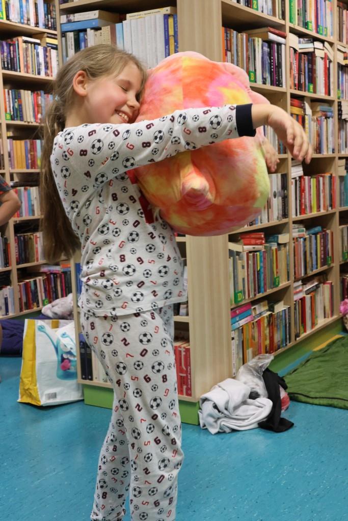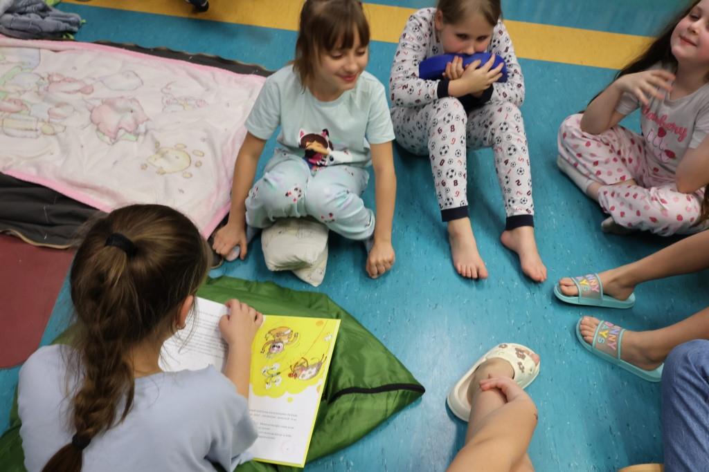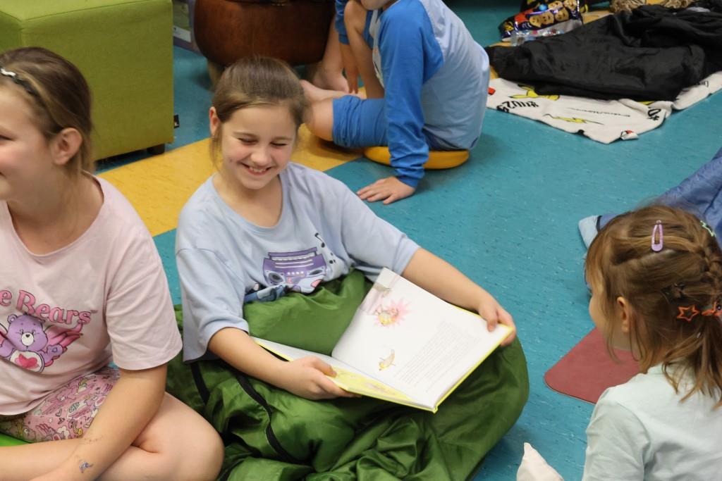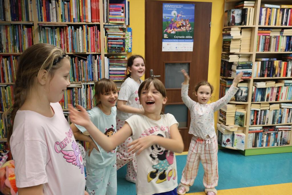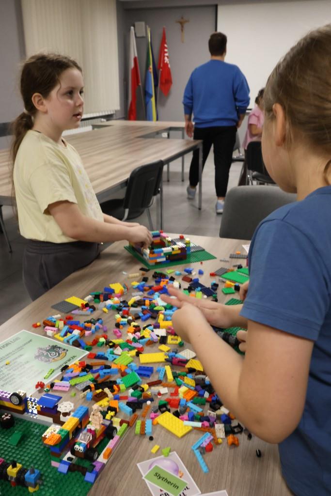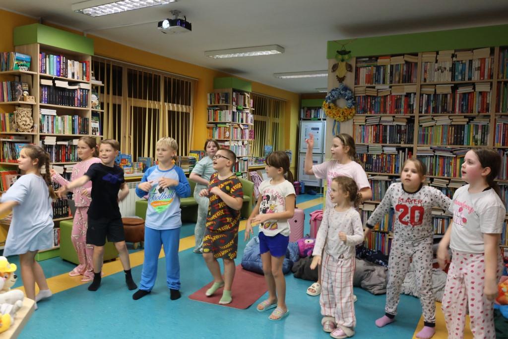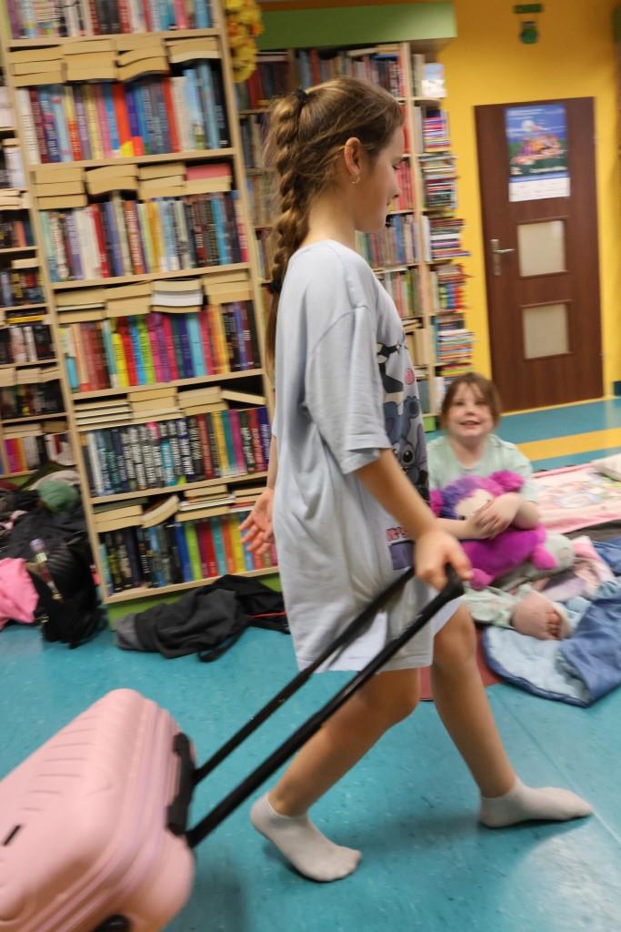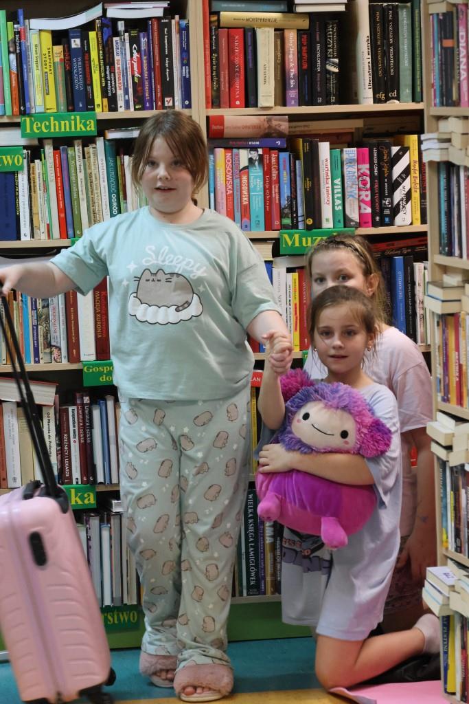 Była to również XI noc w blizanowskiej bibliotece, która od 2015r. organizowała dla umówionych grup uczniowskich po dwie noce w roku (w ferie i w czasie wyznaczonym przez Centrum Edukacji Obywatelskiej. Aktywną działalność na tym polu przerwała pandemia. Tym razem z 12-osobową grupą uczniów kl. IIIa Zespołu Szkolno-Przedszkolnego w Blizanowie nocowała ich wychowawczyni Ewelina Orpel, Gabi Oehl - uczennica kl. I SP nr 2 im. Jana Pawła II w Kaliszu oraz bibliotekarki GBP Blizanów: Paulina Wróblewska - dyrektor, Krystyna Gronowska i praktykantka Wiktoria Łyskawka. Spotkanie rozpoczęło się o godz. 18:30 i trwało do godz. 8:30 kolejnego dnia. Tym razem warsztaty klocków Lego przeprowadzone przez Klockowe studio konstrukcji były połączone z lekturą Harry’ego Pottera i nauką języka angielskiego. Odbyły się pod hasłem „Magic School – LEGO Wizards and Witches”. Na początku uczestnicy założyli Tiarę Przydziału, która wskazała im dom w magicznym uniwersum Harry’ego Pottera: Gryffindor, Hufflepuff, Ravenclaw lub Slytherin. Pracując w czterech grupach budowali: zamki, eliksiry, magiczne stworzenia i tajemnicze ogrody. Przy okazji poznawali angielskie słówka związane z magią. Nauka słownictwa połączona była z zabawą - grą memory. Na zakończenie każdy uczestnik otrzymał od prowadzących zajęcia dyplom oraz słodycze. O kulinaria tego wieczoru zadbały też mamy uczniów i praktykantka Wiktoria, przygotowując babeczki i deserki. Tradycją tej imprezy poza warsztatami kreatywnymi jest również wspólny posiłek (pizza-gigant), śpiewy, tańce i ... głośne czytanie. Dobór literatury był nieprzypadkowy „Lucek i Dziki Nieśpiki” Agnieszki Misiak. Tytułowe zwierzęta są metaforą stanu emocjonalnego dziecka. „Im bardziej trzeba iść spać, tym Lucka nachodzi większa ochota na zabawę, jedzenie czy wygłupy – nieokiełznane Dziki Nieśpiki szaleją w najlepsze”. Zupełnie jak w przypadku uczestników blizanowskiej nocy, którzy robili wszystko, by nie spać. Chociaż młodzi czytelnicy przynieśli śpiwory i ubrali się w piżamy, spania było naprawdę niewiele. W tym roku organizator akcji zaproponował bibliotekom projekcję filmu „Biuro Detektywistyczne Lassego i Mai. Rabuś z pociągu” - ekranizację kultowej serii książek dla dzieci autorstwa szwedzkiego pisarza Martina Widmarka. Podczas nocy w bibliotece można się było przekonać, że w jednym z pojazdów w bibliotece ukryty jest właśnie ten cykl książek.