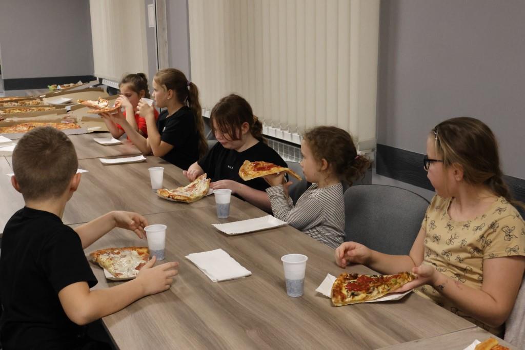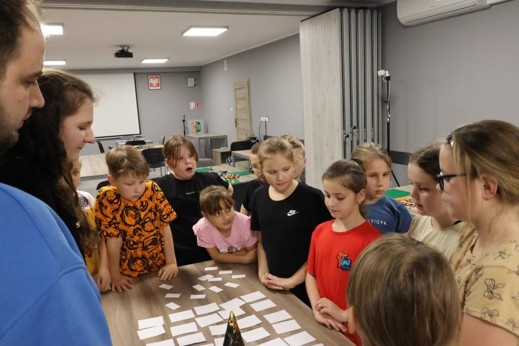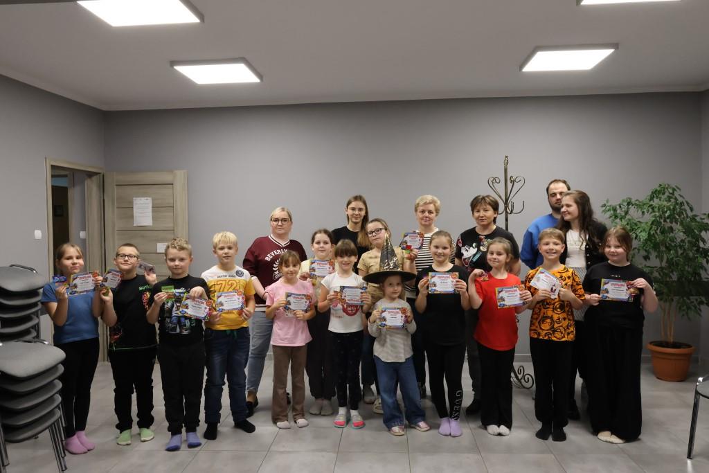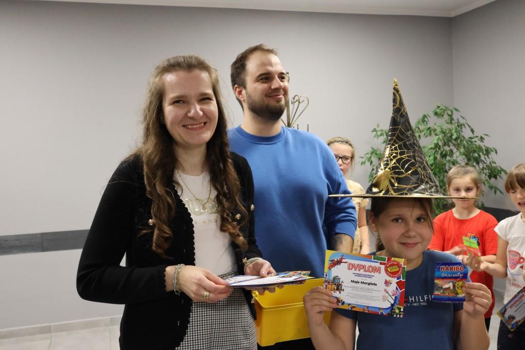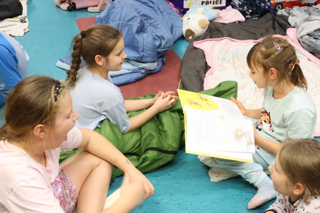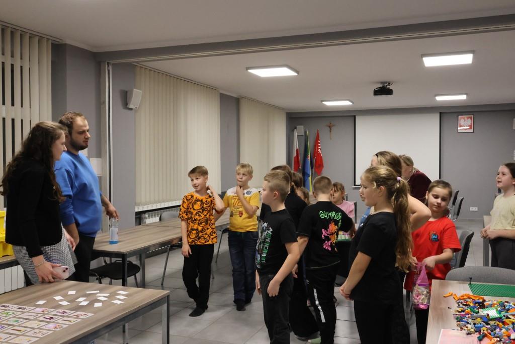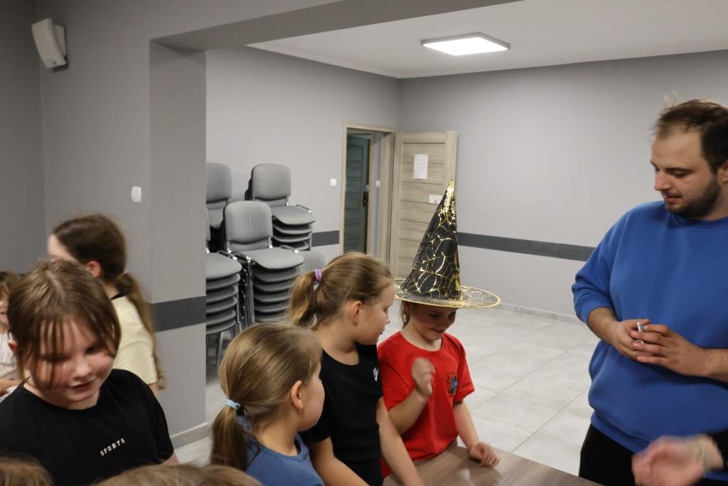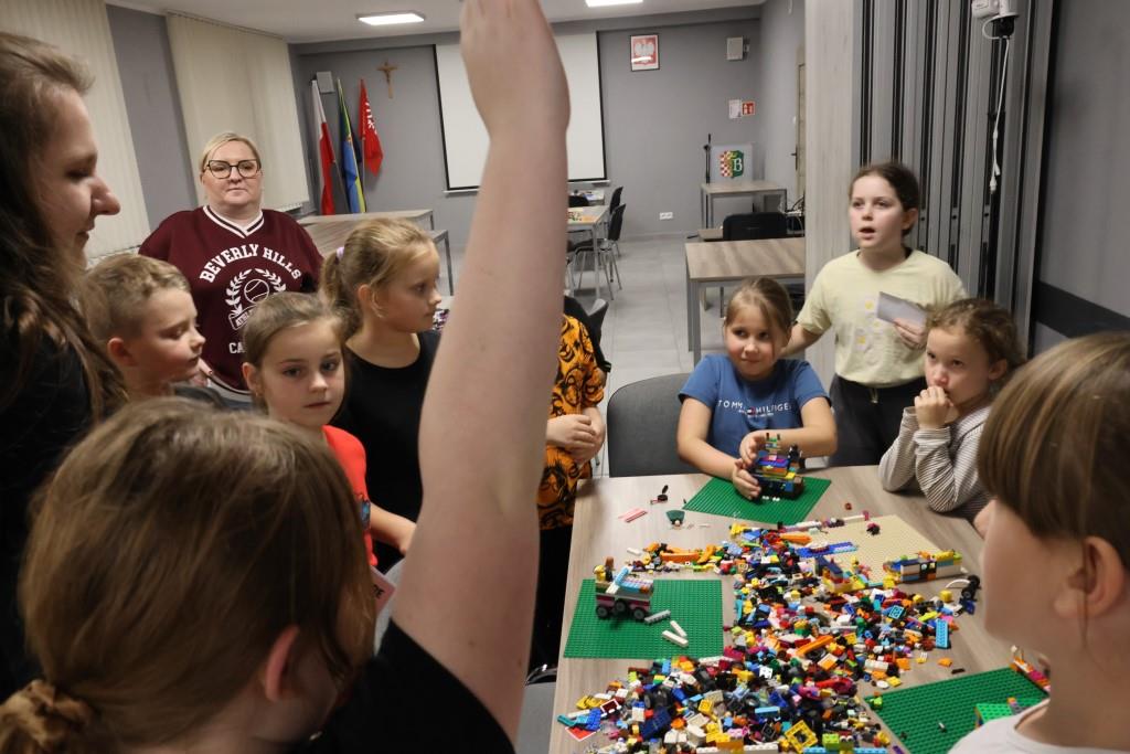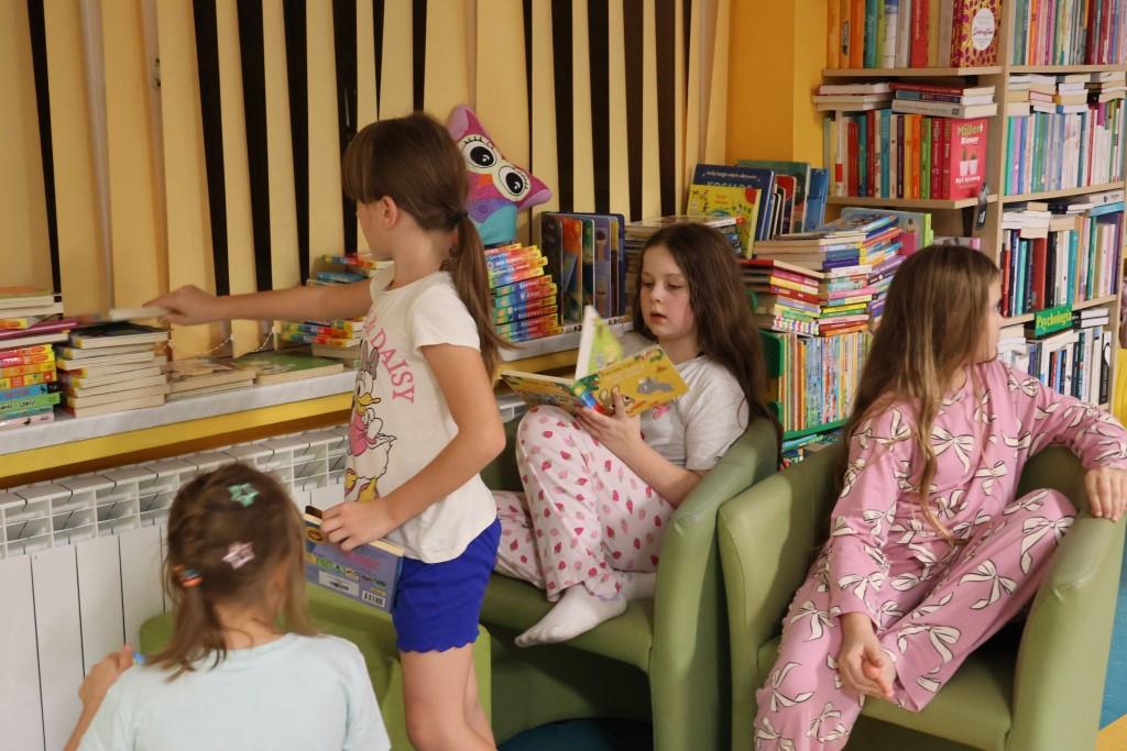 Była to również XI noc w blizanowskiej bibliotece, która od 2015r. organizowała dla umówionych grup uczniowskich po dwie noce w roku (w ferie i w czasie wyznaczonym przez Centrum Edukacji Obywatelskiej. Aktywną działalność na tym polu przerwała pandemia. Tym razem z 12-osobową grupą uczniów kl. IIIa Zespołu Szkolno-Przedszkolnego w Blizanowie nocowała ich wychowawczyni Ewelina Orpel, Gabi Oehl - uczennica kl. I SP nr 2 im. Jana Pawła II w Kaliszu oraz bibliotekarki GBP Blizanów: Paulina Wróblewska - dyrektor, Krystyna Gronowska i praktykantka Wiktoria Łyskawka. Spotkanie rozpoczęło się o godz. 18:30 i trwało do godz. 8:30 kolejnego dnia. Tym razem warsztaty klocków Lego przeprowadzone przez Klockowe studio konstrukcji były połączone z lekturą Harry’ego Pottera i nauką języka angielskiego. Odbyły się pod hasłem „Magic School – LEGO Wizards and Witches”. Na początku uczestnicy założyli Tiarę Przydziału, która wskazała im dom w magicznym uniwersum Harry’ego Pottera: Gryffindor, Hufflepuff, Ravenclaw lub Slytherin. Pracując w czterech grupach budowali: zamki, eliksiry, magiczne stworzenia i tajemnicze ogrody. Przy okazji poznawali angielskie słówka związane z magią. Nauka słownictwa połączona była z zabawą - grą memory. Na zakończenie każdy uczestnik otrzymał od prowadzących zajęcia dyplom oraz słodycze. O kulinaria tego wieczoru zadbały też mamy uczniów i praktykantka Wiktoria, przygotowując babeczki i deserki. Tradycją tej imprezy poza warsztatami kreatywnymi jest również wspólny posiłek (pizza-gigant), śpiewy, tańce i ... głośne czytanie. Dobór literatury był nieprzypadkowy „Lucek i Dziki Nieśpiki” Agnieszki Misiak. Tytułowe zwierzęta są metaforą stanu emocjonalnego dziecka. „Im bardziej trzeba iść spać, tym Lucka nachodzi większa ochota na zabawę, jedzenie czy wygłupy – nieokiełznane Dziki Nieśpiki szaleją w najlepsze”. Zupełnie jak w przypadku uczestników blizanowskiej nocy, którzy robili wszystko, by nie spać. Chociaż młodzi czytelnicy przynieśli śpiwory i ubrali się w piżamy, spania było naprawdę niewiele. W tym roku organizator akcji zaproponował bibliotekom projekcję filmu „Biuro Detektywistyczne Lassego i Mai. Rabuś z pociągu” - ekranizację kultowej serii książek dla dzieci autorstwa szwedzkiego pisarza Martina Widmarka. Podczas nocy w bibliotece można się było przekonać, że w jednym z pojazdów w bibliotece ukryty jest właśnie ten cykl książek.