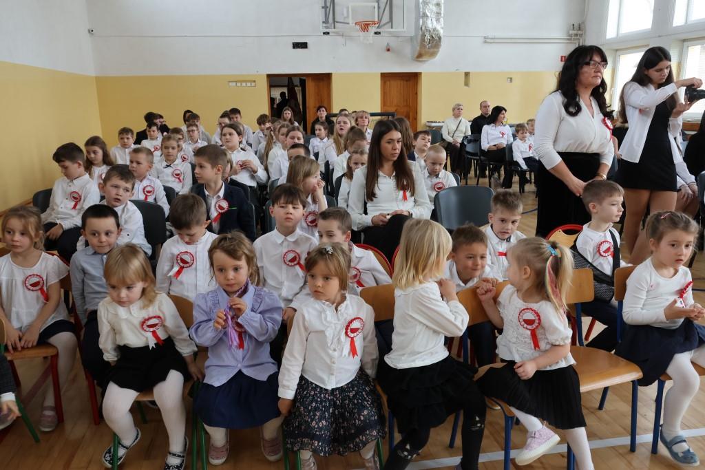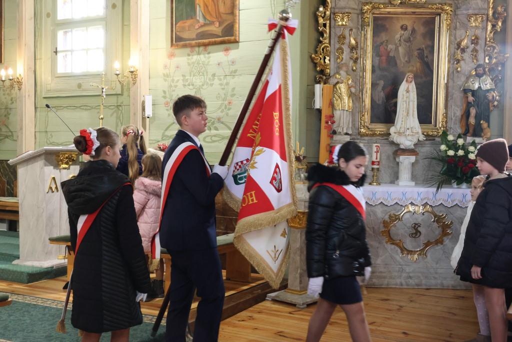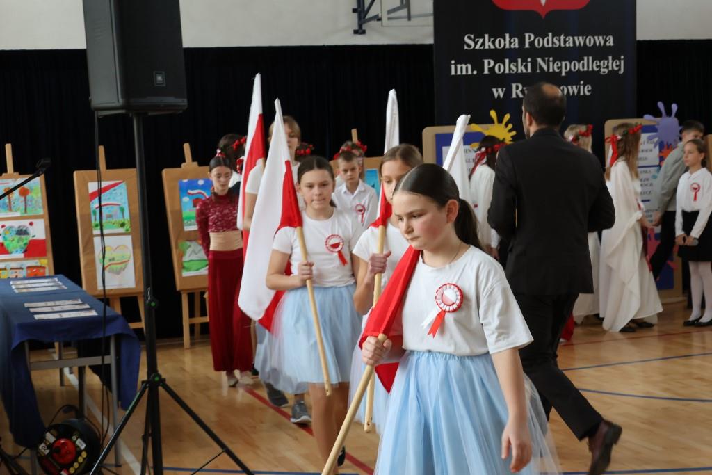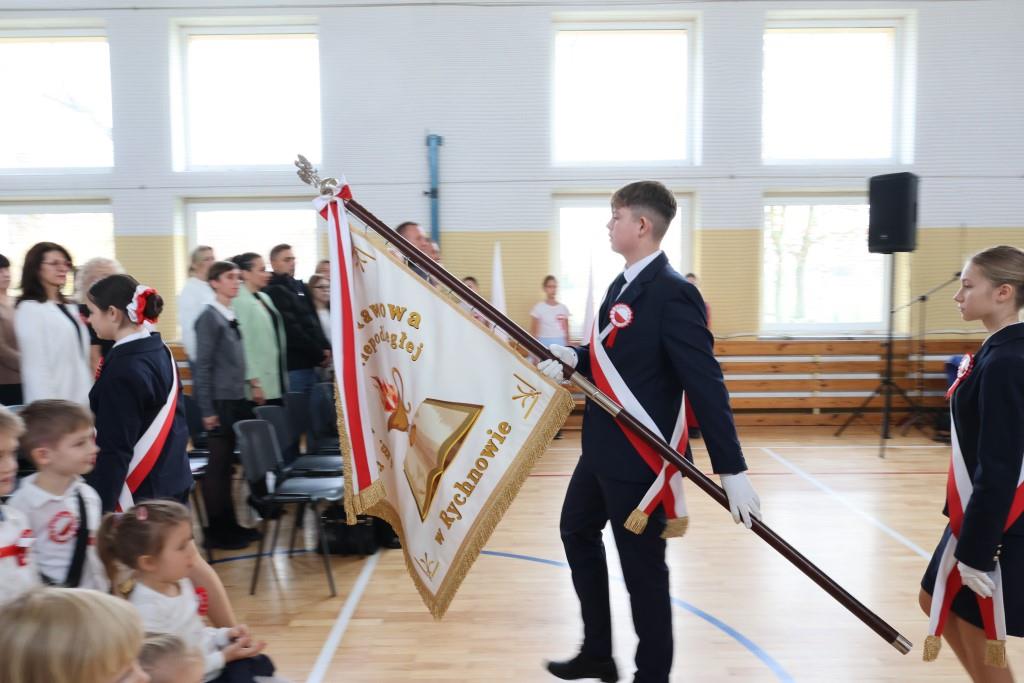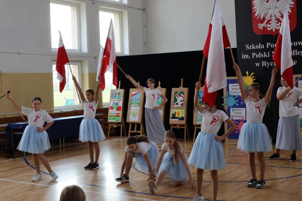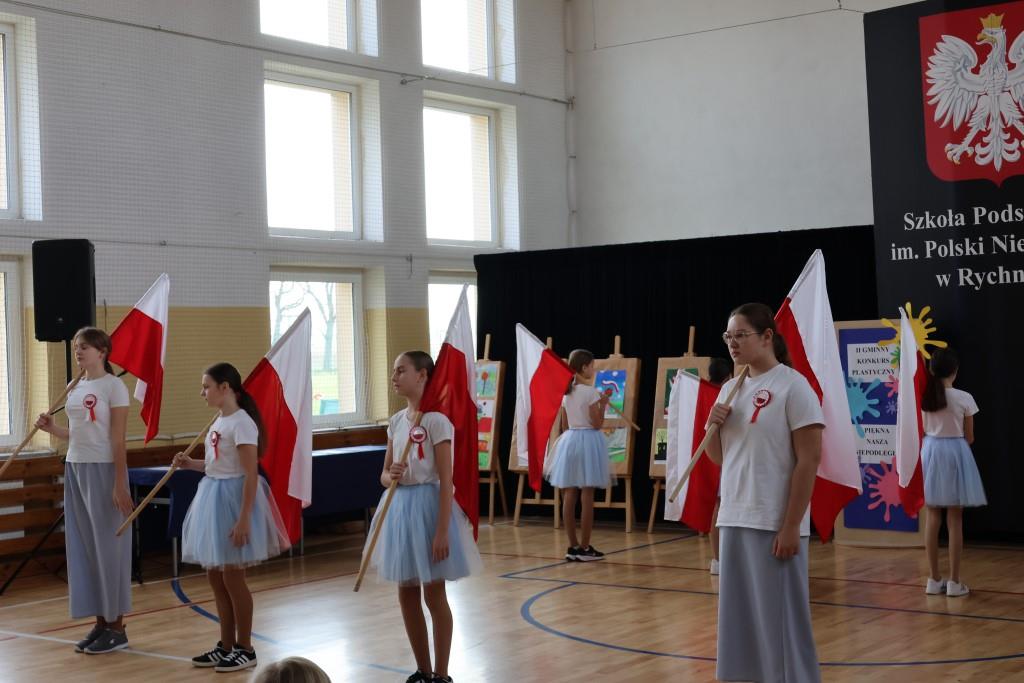 Szczególny charakter miały obchody rocznicy odzyskania niepodległości w Szkole Podstawowej w Rychnowie, która nosi imię Polski Niepodległej. Uroczystości rozpoczęła msza św. w kościele parafialnym w Rychnowie, którą odprawił ks. Maciej Borowicz - proboszcz parafii. Po niej uczestnicy przemaszerowali do szkoły na uroczystą akademię, którą przygotowały nauczycielki Katarzyna Marciniak i Renata Kościelak. Zaproszenie Zarządu Rychnowskiego Stowarzyszenia na Rzecz Dzieci i Młodzieży, który reprezentowały: Justyna Pietrzak – prezes i jednocześnie wicedyrektor szkoły, Katarzyna Marciniak – sekretarz, Natalia Kurek – członek zarządu oraz dyrektora szkoły – Krzysztofa Konewki przyjęli: Jolanta Raszewska – starszy wizytator kaliskiej delegatury Kuratorium Oświaty w Poznaniu, Joanna Włodarczyk – kierownik Ref. Oświaty UG Blizanów, Paulina Wróblewska – dyrektor Gminnej Biblioteki Publicznej w Blizanowie, Stanisław Niklas – dyrektor Gminnego Ośrodka Kultury w Blizanowie, Grzegorz Słodkowski – radny Rady Gminy Blizanów, Ewa Prus - członek honorowy stowarzyszenia, przedstawicielki Rady Rodziców: poza wyżej wymienioną Natalią Kurek - przewodniczącą, Sonia Kalinowska, Milena Konieczna. Podczas uroczystości wyniki II Gminnego Konkursu Plastycznego pod hasłem „Piękna Nasza Niepodległa” ogłosiła nauczyciel i plastyk Anna Olczyk – przewodnicząca jury. Poza nią 35 prac oceniały też: Anna Janowiak-Markiewicz – artysta plastyk, ikonopis i Małgorzata Kraszkiewicz – nauczyciel konsultant ds. edukacji przedszkolnej i wczesnoszkolnej ODN w Kaliszu. W tym roku uczestnicy przyjechali do rychnowskiej szkoły 30 października i wykonywali prace na miejscu. Miały się w nich pojawić symbole narodowe.