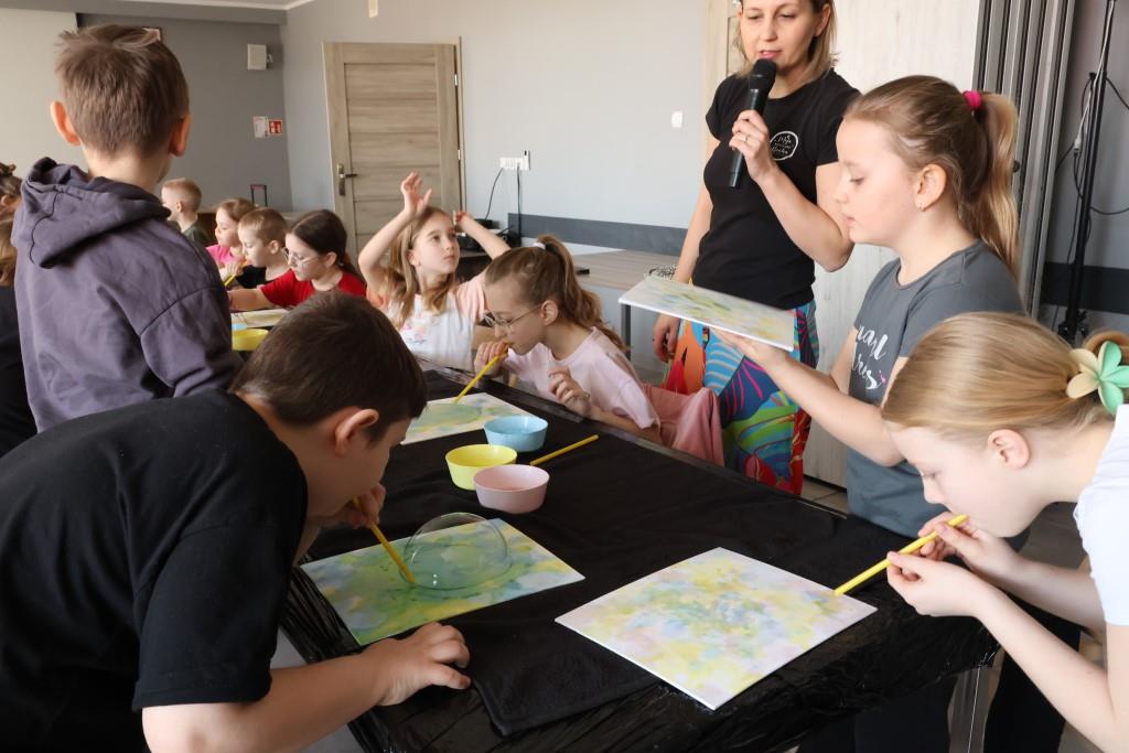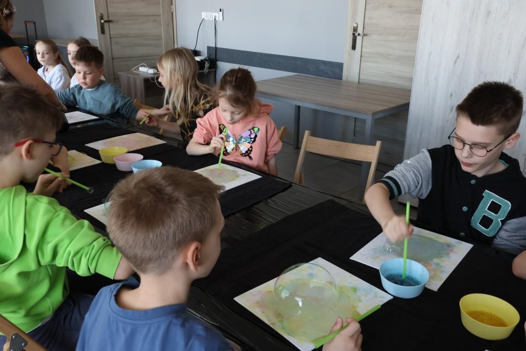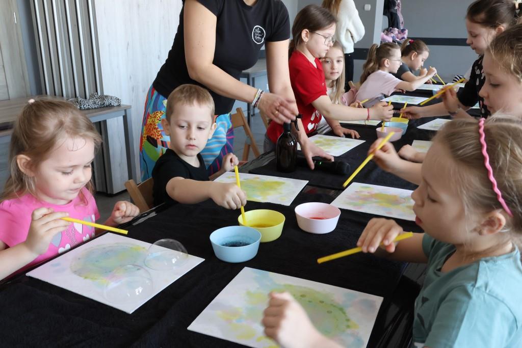 W pierwszy dzień wiosny, w sobotę 21 marca, 42 czytelników GBP w Blizanowie wzięło udział w warsztatach malowania bańkami przeprowadzonych przez Katarzynę Cierniak "Moja magiczna bańka". Byli to najbardziej aktywni czytelnicy blizanowskiej biblioteki dla których udział w zajęciach jest nagrodą od Gminnej Biblioteki Publicznej w Blizanowie - sponsora i organizatora warsztatów. Przy relaksacyjnej muzyce i uspokojonym oddechu wszyscy uczestnicy radzili sobie z zadaniem. Poznali w ten sposób malarstwo abstrakcyjne, łączyli kolory podstawowe i przede wszystkim dobrze się bawili, obserwując efekty swoich godzinnych działań artystycznych.