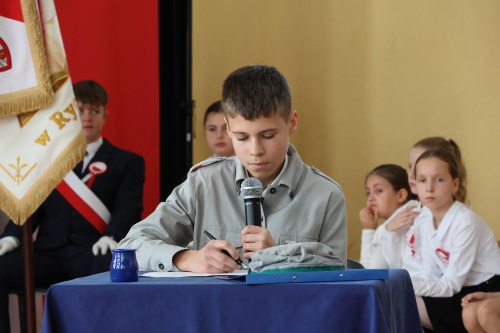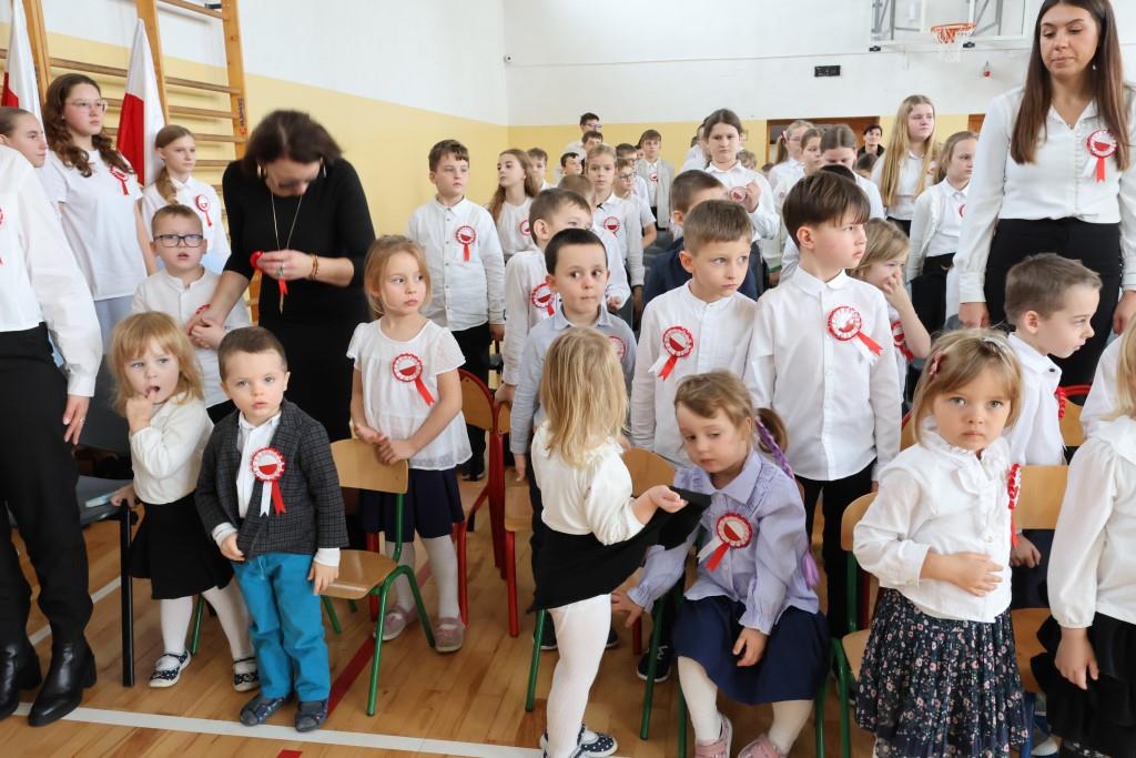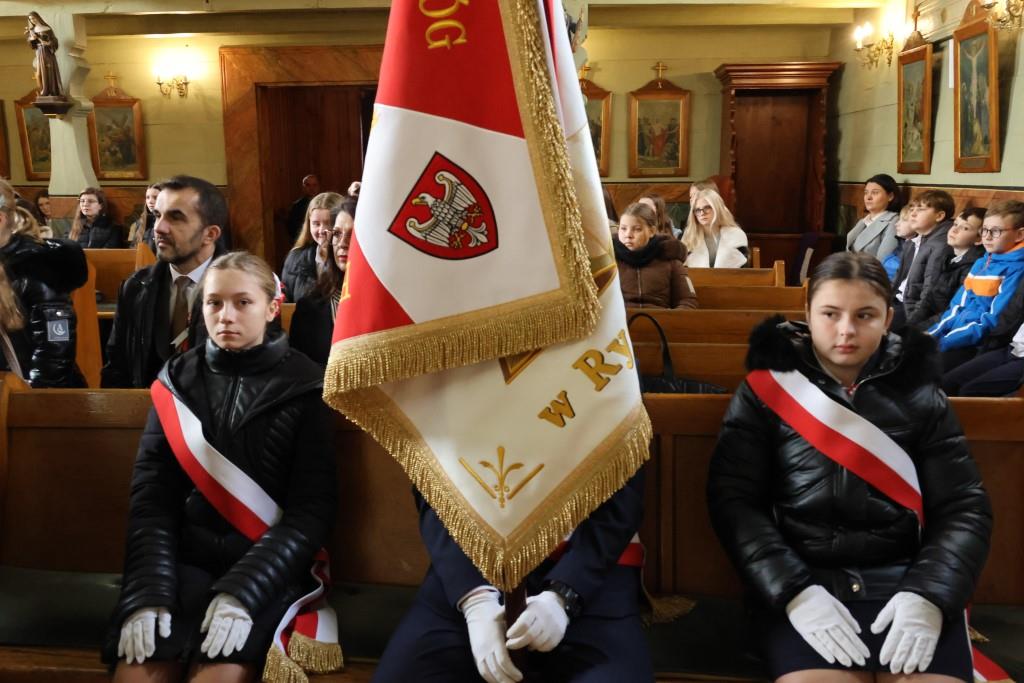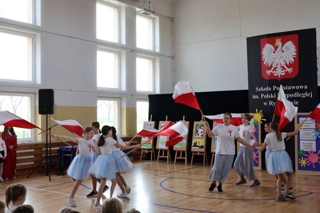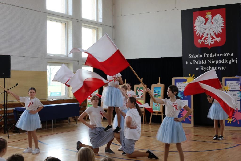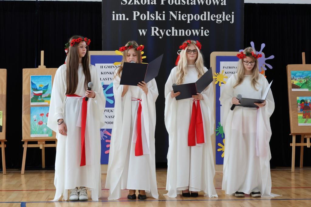 Szczególny charakter miały obchody rocznicy odzyskania niepodległości w Szkole Podstawowej w Rychnowie, która nosi imię Polski Niepodległej. Uroczystości rozpoczęła msza św. w kościele parafialnym w Rychnowie, którą odprawił ks. Maciej Borowicz - proboszcz parafii. Po niej uczestnicy przemaszerowali do szkoły na uroczystą akademię, którą przygotowały nauczycielki Katarzyna Marciniak i Renata Kościelak. Zaproszenie Zarządu Rychnowskiego Stowarzyszenia na Rzecz Dzieci i Młodzieży, który reprezentowały: Justyna Pietrzak – prezes i jednocześnie wicedyrektor szkoły, Katarzyna Marciniak – sekretarz, Natalia Kurek – członek zarządu oraz dyrektora szkoły – Krzysztofa Konewki przyjęli: Jolanta Raszewska – starszy wizytator kaliskiej delegatury Kuratorium Oświaty w Poznaniu, Joanna Włodarczyk – kierownik Ref. Oświaty UG Blizanów, Paulina Wróblewska – dyrektor Gminnej Biblioteki Publicznej w Blizanowie, Stanisław Niklas – dyrektor Gminnego Ośrodka Kultury w Blizanowie, Grzegorz Słodkowski – radny Rady Gminy Blizanów, Ewa Prus - członek honorowy stowarzyszenia, przedstawicielki Rady Rodziców: poza wyżej wymienioną Natalią Kurek - przewodniczącą, Sonia Kalinowska, Milena Konieczna. Podczas uroczystości wyniki II Gminnego Konkursu Plastycznego pod hasłem „Piękna Nasza Niepodległa” ogłosiła nauczyciel i plastyk Anna Olczyk – przewodnicząca jury. Poza nią 35 prac oceniały też: Anna Janowiak-Markiewicz – artysta plastyk, ikonopis i Małgorzata Kraszkiewicz – nauczyciel konsultant ds. edukacji przedszkolnej i wczesnoszkolnej ODN w Kaliszu. W tym roku uczestnicy przyjechali do rychnowskiej szkoły 30 października i wykonywali prace na miejscu. Miały się w nich pojawić symbole narodowe.