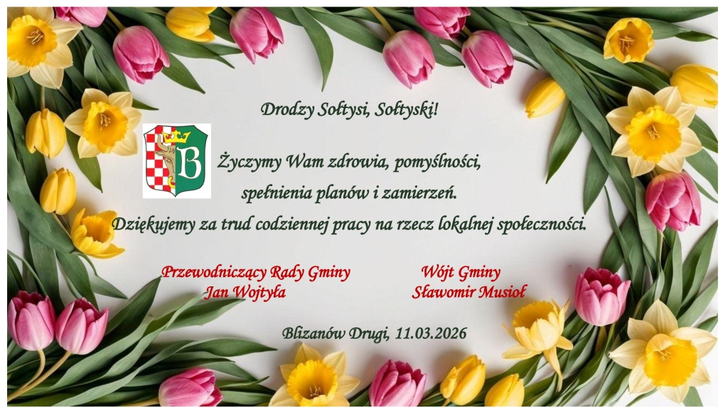 Piękne stare dwory, wiejskie kościółki, malownicza dolina rzeki Prosny, znaczne obszary leśne, bogate w owoce i grzyby są największymi atrakcjami turystycznymi gminy. Pod względem gospodarczym oferujemy wysoką produkcję rolną i wolę współpracy, przychylność mieszkańców i władz gminy, korzystnie położone tereny i budynki dla prowadzenia działalności gospodarczej oraz atrakcyjne tereny uzbrojone w gaz, wodę, telefony. Atrakcyjność naszą zwiększają dogodne warunki komunikacyjne z Poznaniem, Łodzią i Wrocławiem. Możemy zapewnić Państwa, że w gminie Blizanów spotkacie się z uprzejmością i gościnnością jej mieszkańców, a ze strony władz z przychylnością i pomocą.